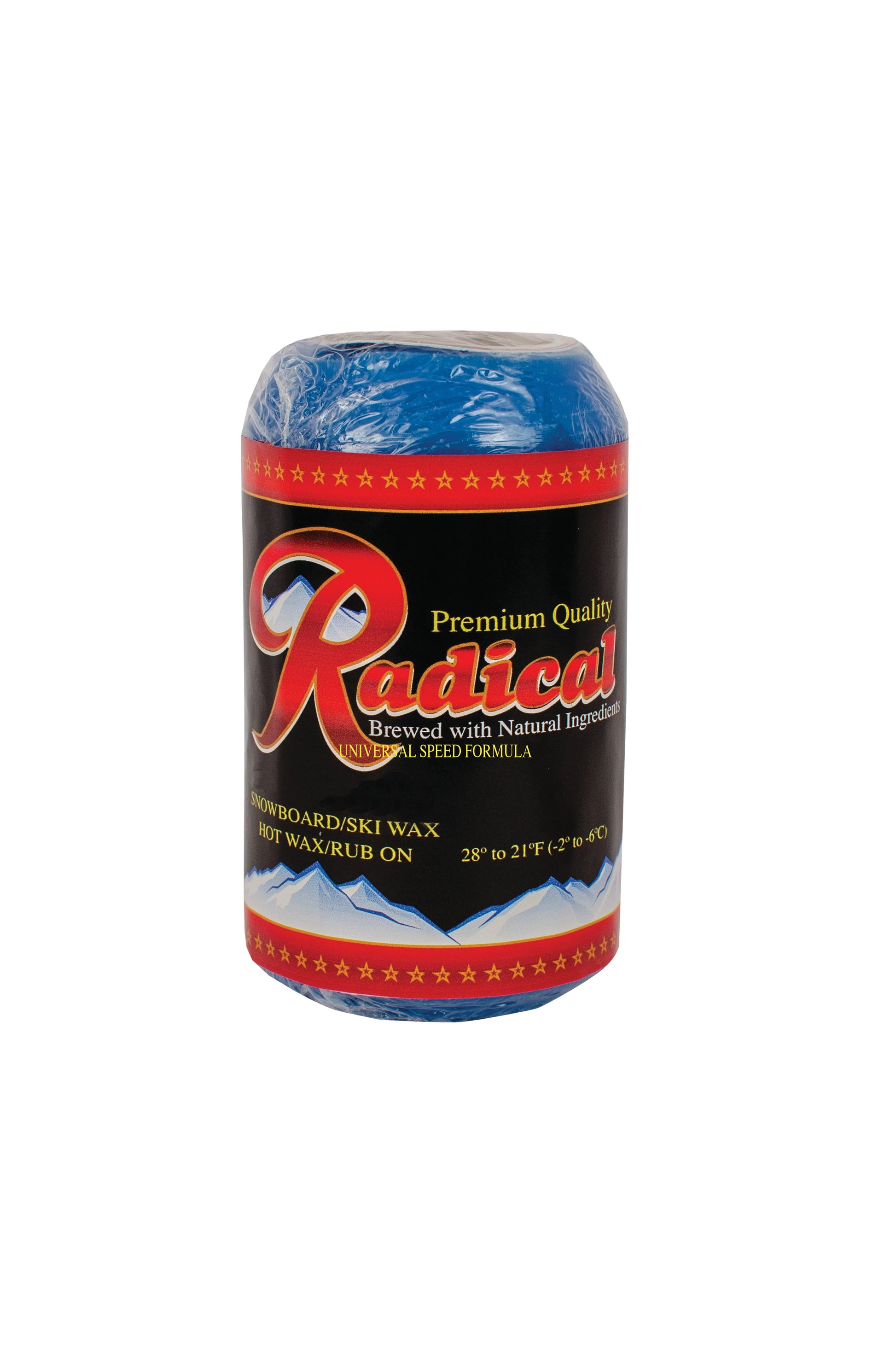 FORMULA:- WAX TYPE: UNIVERSAL SNOW CONDITIONS WAX Performance Range: 28ºF to 21ºF (-2ºC to -6ºC) Excellent glide, acceleration, and fantastic top end speed in wide range of conditions.